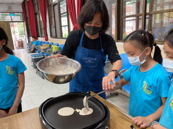 石碇國小是新北市面積最小的國小,學校只有6個班級,每個年級一班共27人,加上幼兒園總人數也才50出頭,今天一起參與鬆餅DIY的學生幾乎就是全校了~ 活動在午後開始,春天的陽光溫暖和煦,雖然戴著口罩,但孩子笑彎的雙眼就跟陽光一樣,暖暖的照亮我們的心。今天幼兒園的孩子不能一起參與,但國小的小哥哥小姊姊們,也沒忘了要與幼兒園的小朋友分享,不吵不鬧的等我們工作人員先將幼兒園的鬆餅煎出來,讓我們感受到全校的孩子和老師就像一家人一樣,而他們的愛就和鬆餅的香氣一樣,在空間裡流轉,讓每個人都不禁幸福的微笑~
