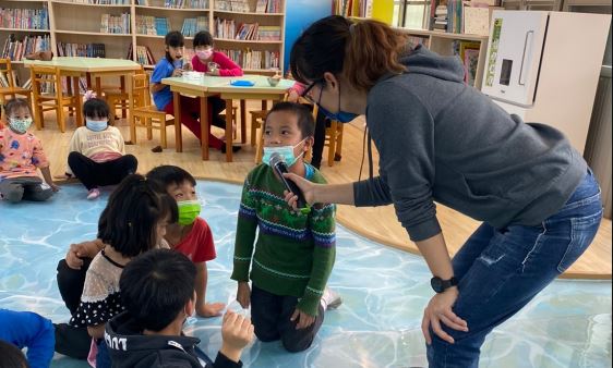 此外,也可以看到老師親切的與小朋友們互動,帶著孩子玩遊戲,處處傳遞著開心,就像九州鬆餅來到花蓮發散幸福一樣!