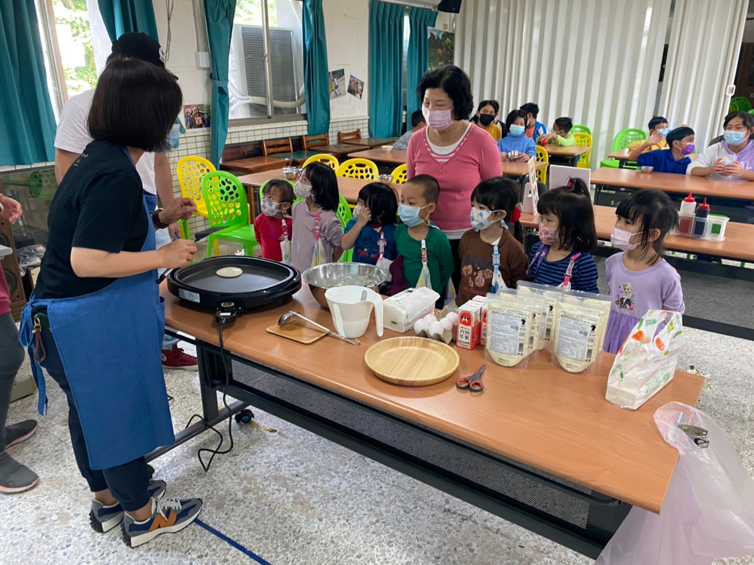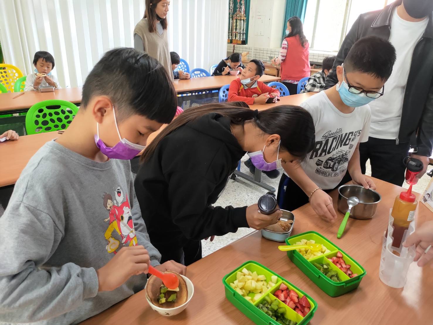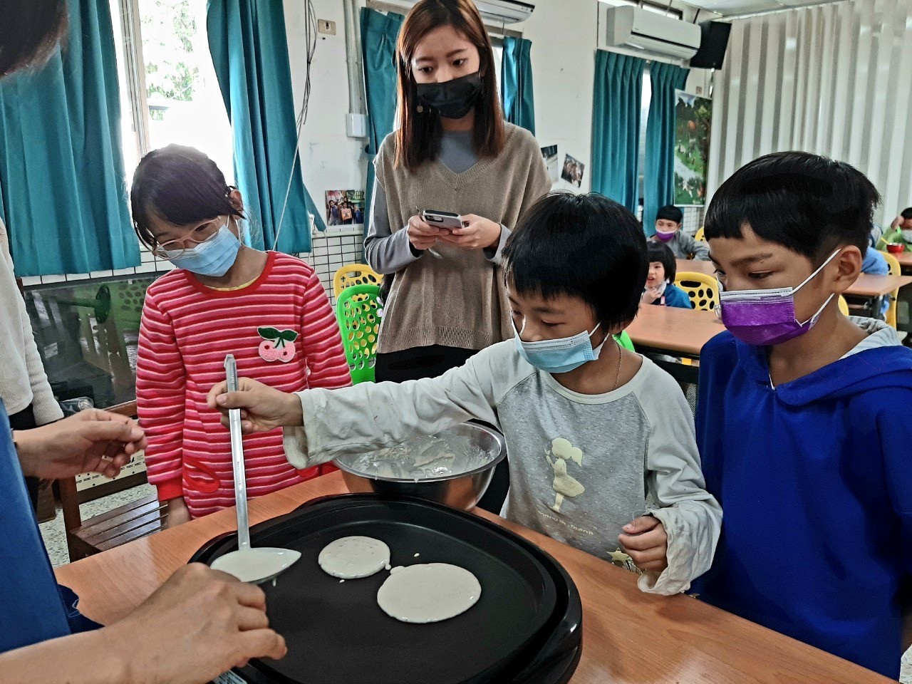在當天參與活動的小朋友們僅25人,但不管是老師還是孩子,每個人都非常參與其中,用心地製作鬆餅,用水果和醬料為自己的鬆餅加上裝飾。