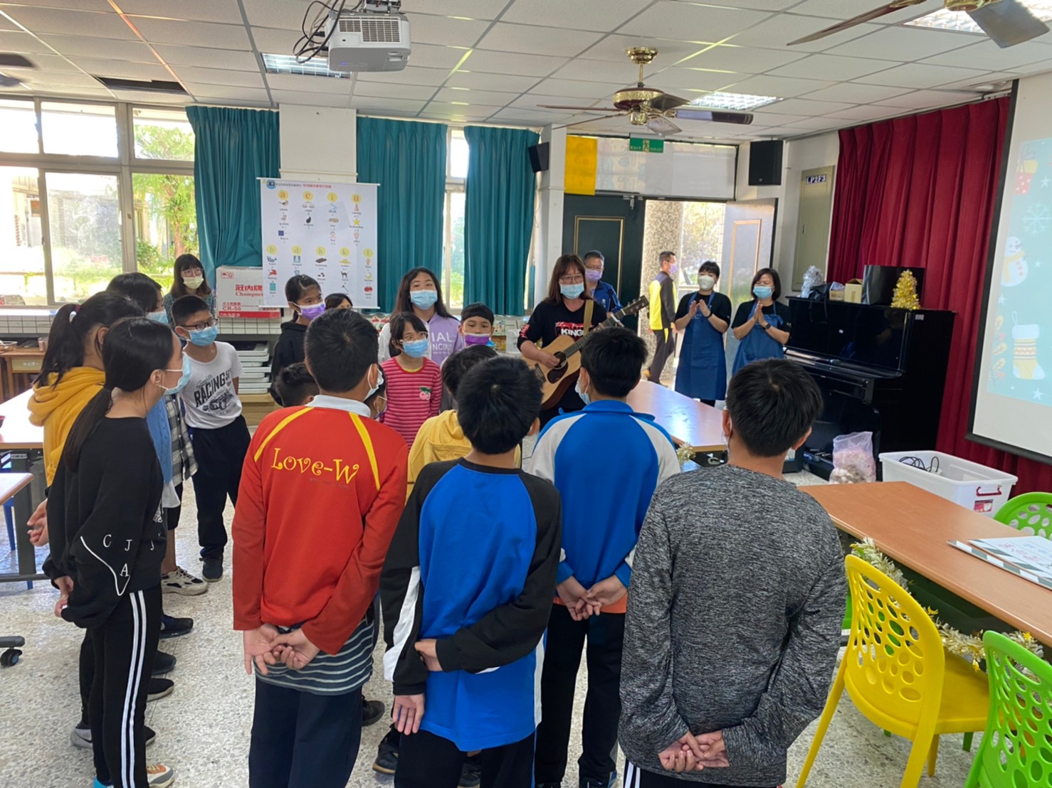 在活動的最後,老師們還使用傳統樂器伴奏,帶著小朋友們將噶瑪蘭語、阿美語、布農語的歌聲化成聖誕祝福送給我們。