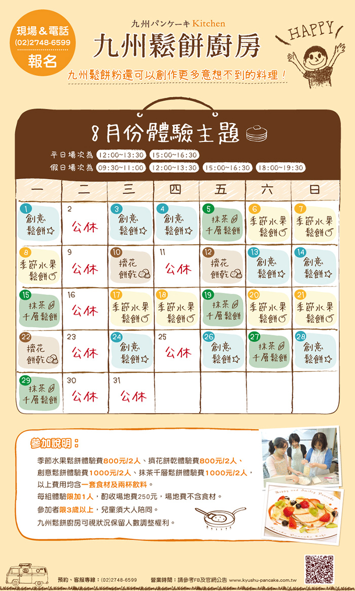8月下旬的體驗主題出爐囉,抹茶千層鬆餅體驗加開假日場!