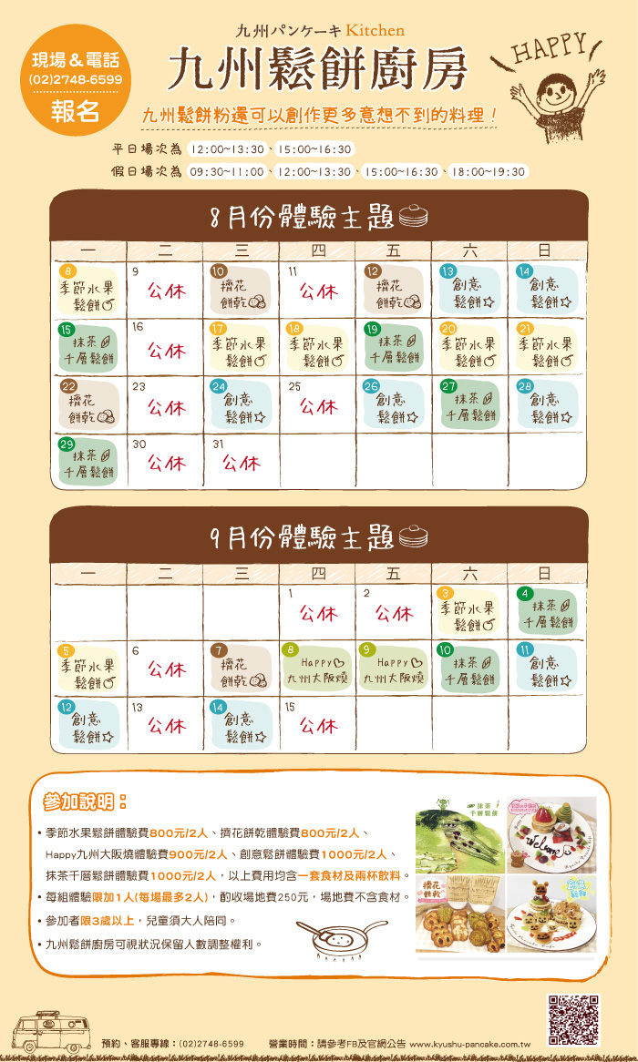 ※9月1日~9月15日的體驗主題,報名後請先完成繳費,以利事先準備新鮮食材、及確保名額。