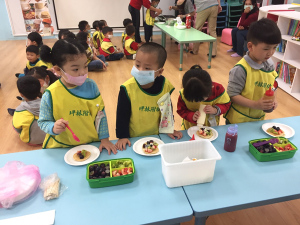 4月14日到新北市坪林國小和低年級,還有幼稚園的小朋友們一起做九州鬆餅,