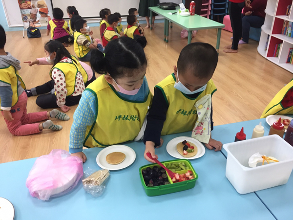 大家都很活潑,也將鬆餅師的話聽進去,不浪費食材,也有小朋友不只是自己吃,也做了九州鬆餅給家人吃唷~