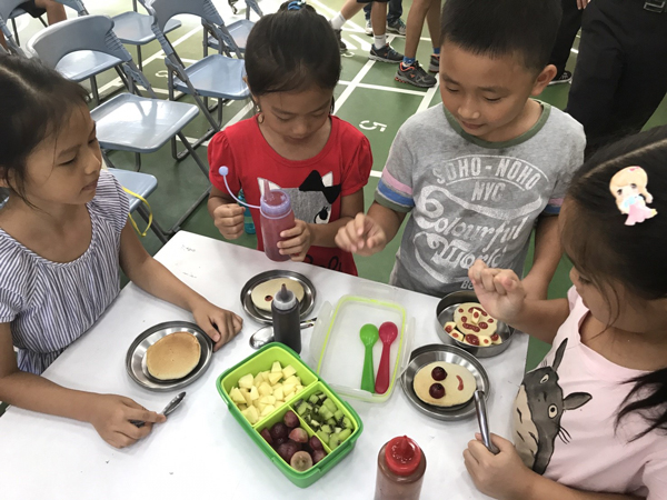 每個小朋友都很有秩序的排隊輪流煎鬆餅,幾位厲害的小朋友們除了自己吃,還多煎了幾片給平常辛苦的老師們,真是太感動了