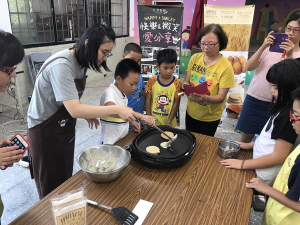 在這個團圓美滿的日子,我們到了十分國小和小朋友們一起做鬆餅