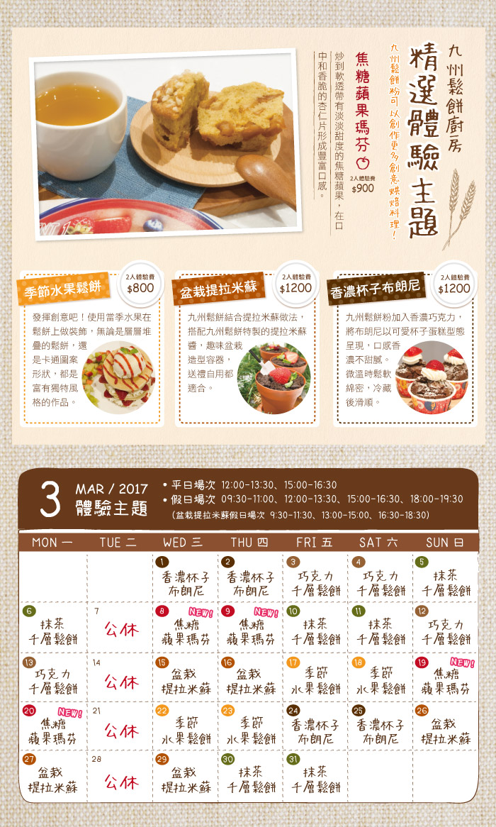 趕快來九州鬆餅廚房學習製作甜點、製作專屬下午茶吧~