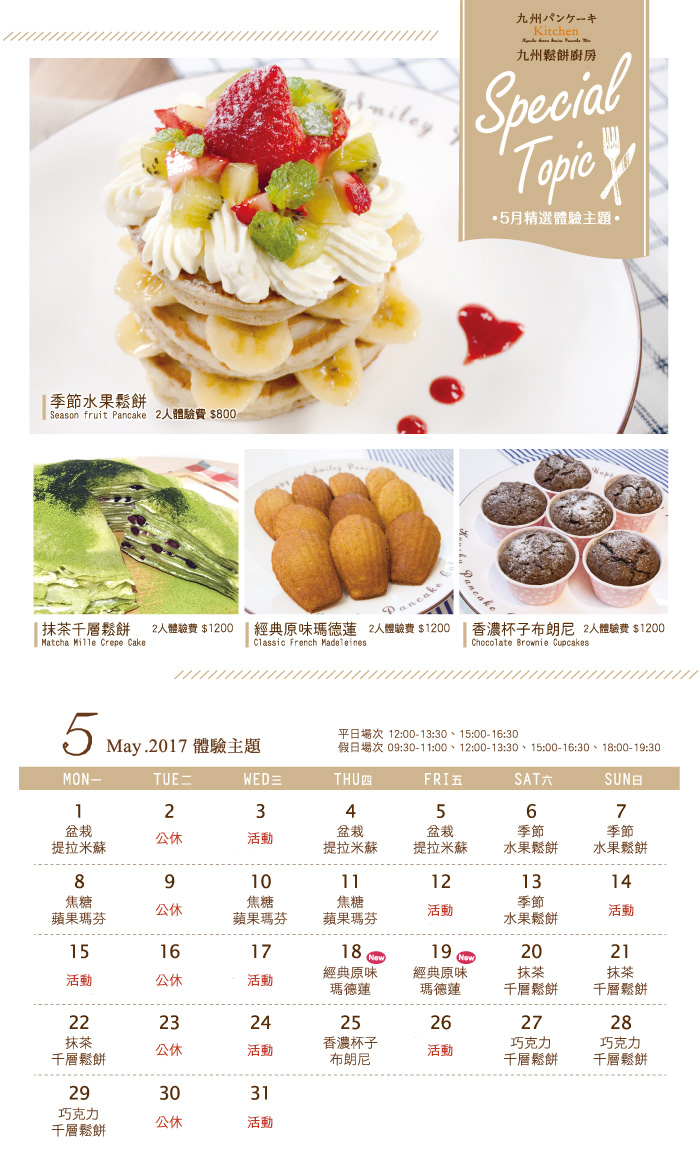 5月體驗主題出爐囉,5月的體驗開始可以線上預約囉2017-04-19