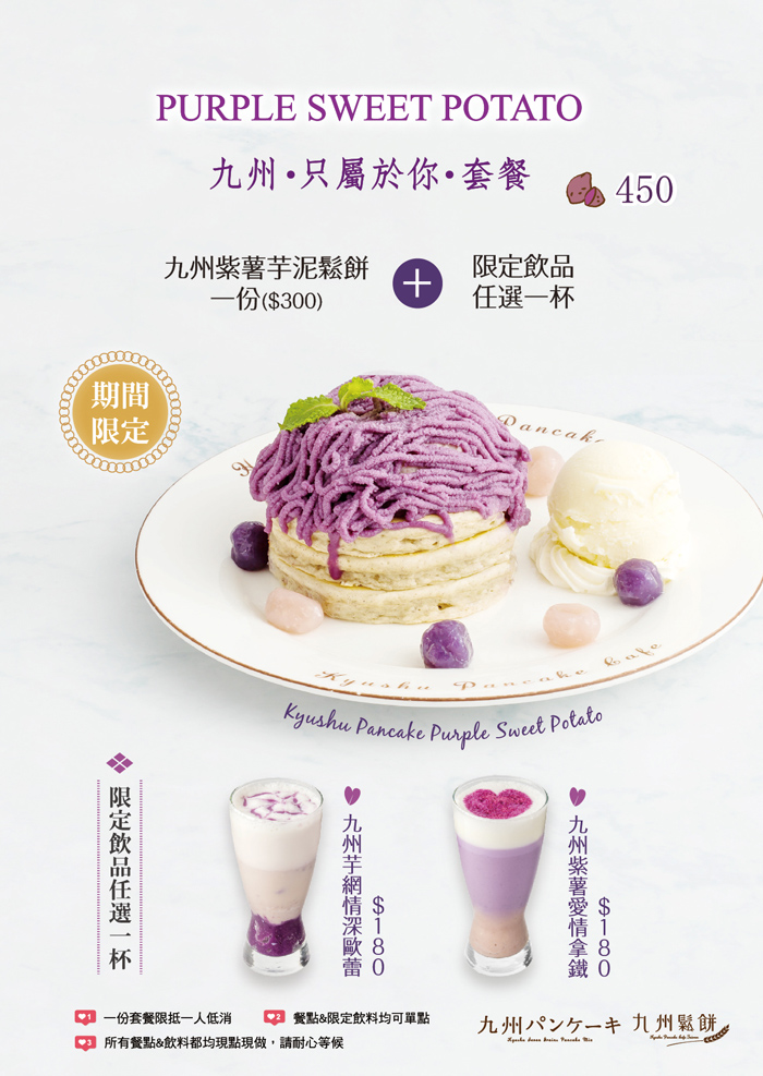 (已結束)【期間限定MENU】九州紫薯芋泥鬆餅,9/3起~11/30限時限量販售2018-09-03
