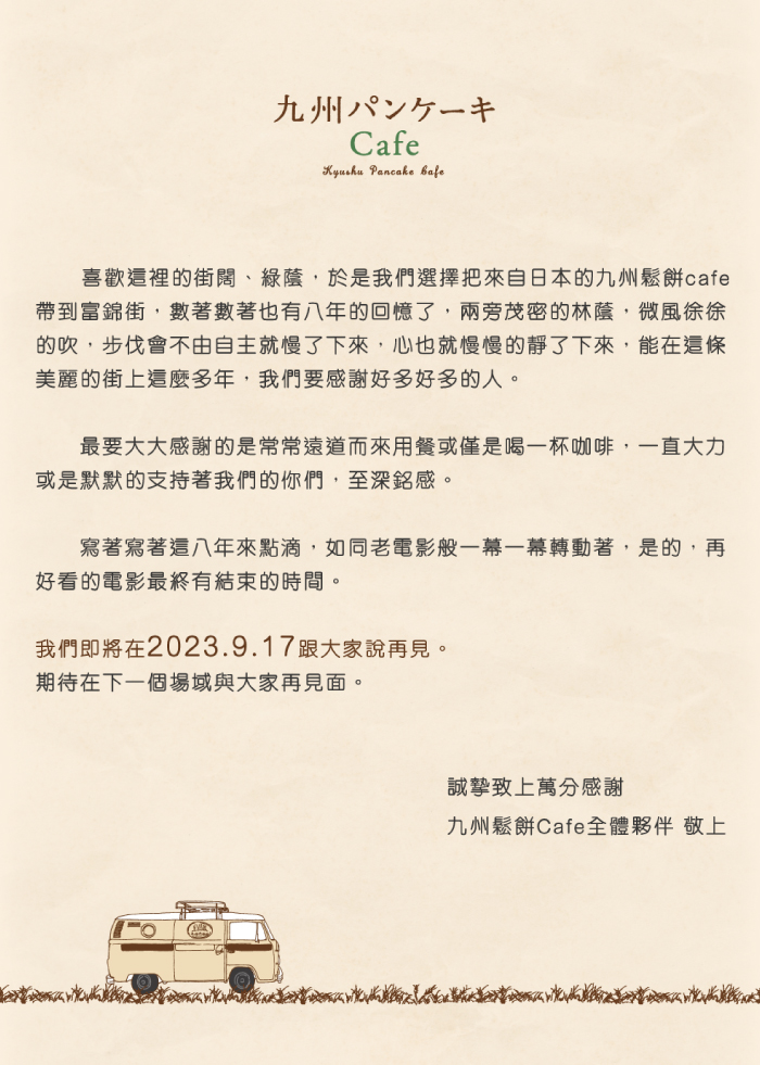九州鬆餅cafe 2023/09/17(日) 結束營業